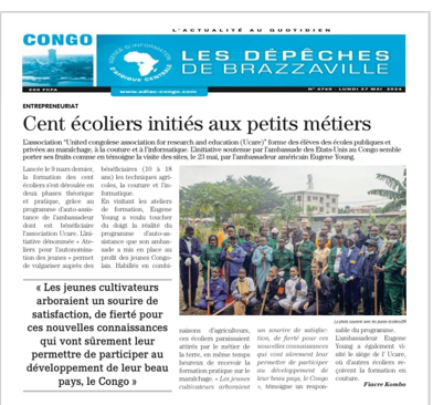 En partenariat avec l’Ambassade des États-Unis au Congo, l’Association Congolaise Unie pour la Recherche et l’Éducation (UCARE) a récemment organisé une série d’ateliers pour 100 élèves de milieux défavorisés à Brazzaville.